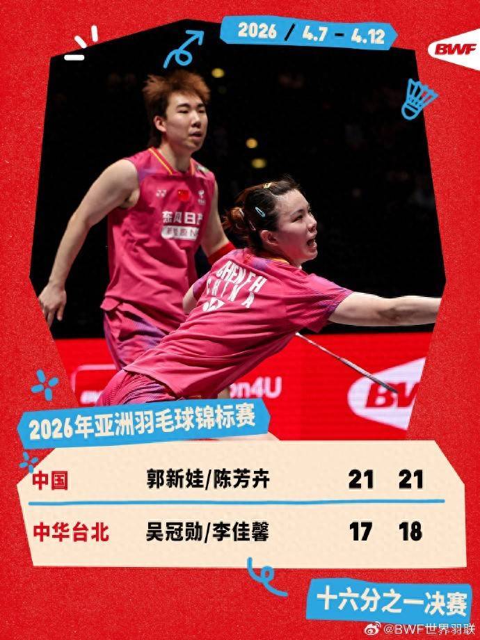 率先出场的是郭新娃/陈芳卉,两东谈主首轮碰上的是中国台北的吴冠勋和李佳馨。算作赛会的六号种子,郭新娃和陈芳卉相接较为证据,实力远在敌手之上,虽未能打出悬殊比分,但仍以21比17、21比18到手取胜晋级第二轮。